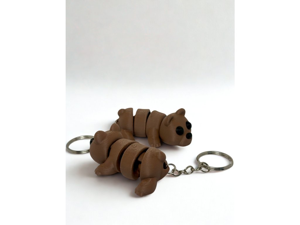 Roztomilý 3D tištěný flexi přívěsek ve tvaru medvěda, který zaujme svým hravým designem a pohyblivými články. Díky praktickému kroužku ji snadno připnete ke klíčům, batohu nebo kabelce.