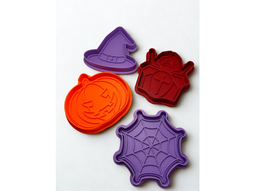 Kompletní sada 3D tištěných vykrajovátek, která nesmí chybět žádnému milovníkovi Halloweenu a kreativního tvoření. Balení obsahuje čtyři oblíbené motivy: 🎃 Dýně, 🕷️ Pavouk, 🕸️ Pavučina a 🧙 Klobouk.
