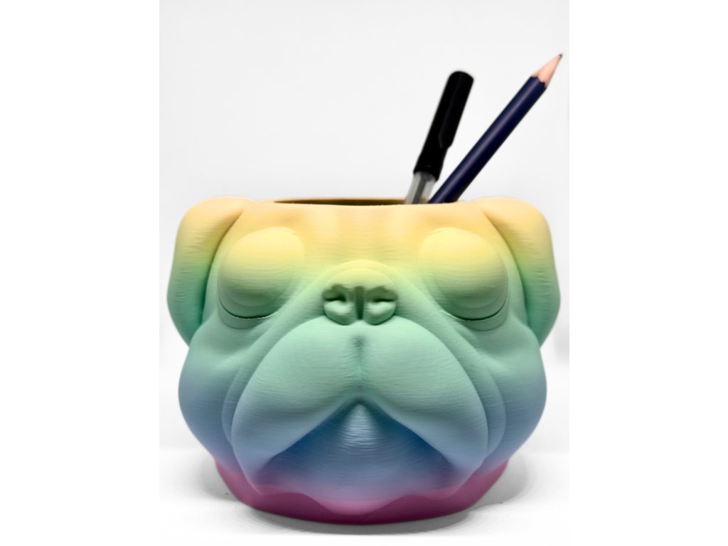 Roztomilý, hravý a nepřehlédnutelný. Tenhle stojánek na tužky ve tvaru hlavy mopse dodá tvému pracovnímu stolu pořádnou dávku osobitosti. Zaujme na první pohled svým duhovým zabarvením a detailním provedením, díky kterému si ho oblíbí nejen milovníci těchto pejsků.