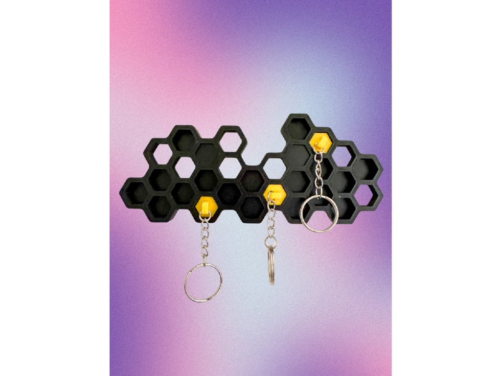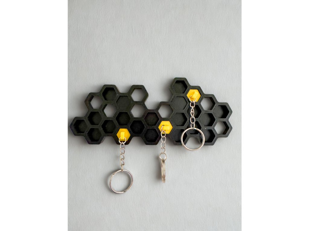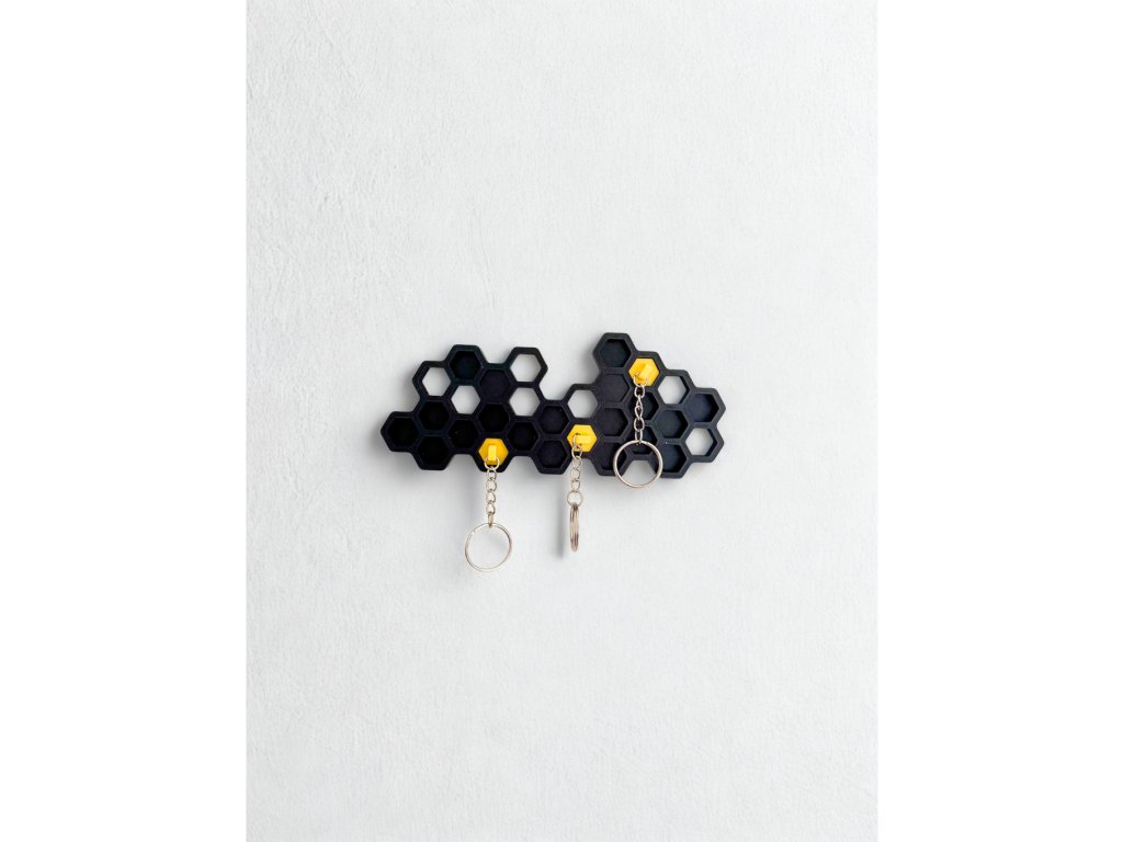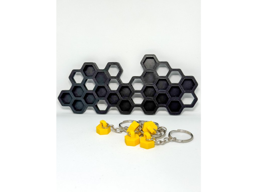 Stylový a praktický věšák na klíče inspirovaný tvarem medové plástve, ke kterému patří 5 ks klíčenek ve tvaru hexagonu. Každá klíčenka přesně zapadne do volného místa ve věšáku - takže své klíče budete mít vždy přehledně a pohromadě.